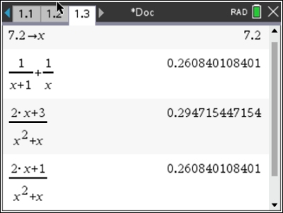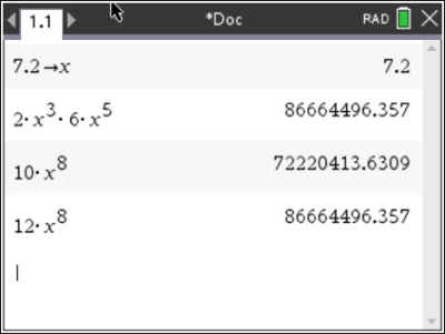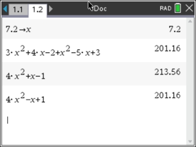 The number 7.2 was stored in x.  The given expression was entered.  was hit.  The multiple choice responses were entered. Choice #2 was a match.
