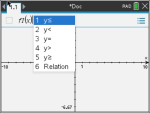 • Hit . A drop down box will appear with inequality choices.