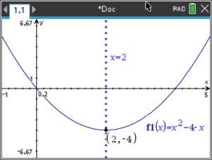 Point to any location on the parabola and the axis of symmetry, with its equation, will appear.